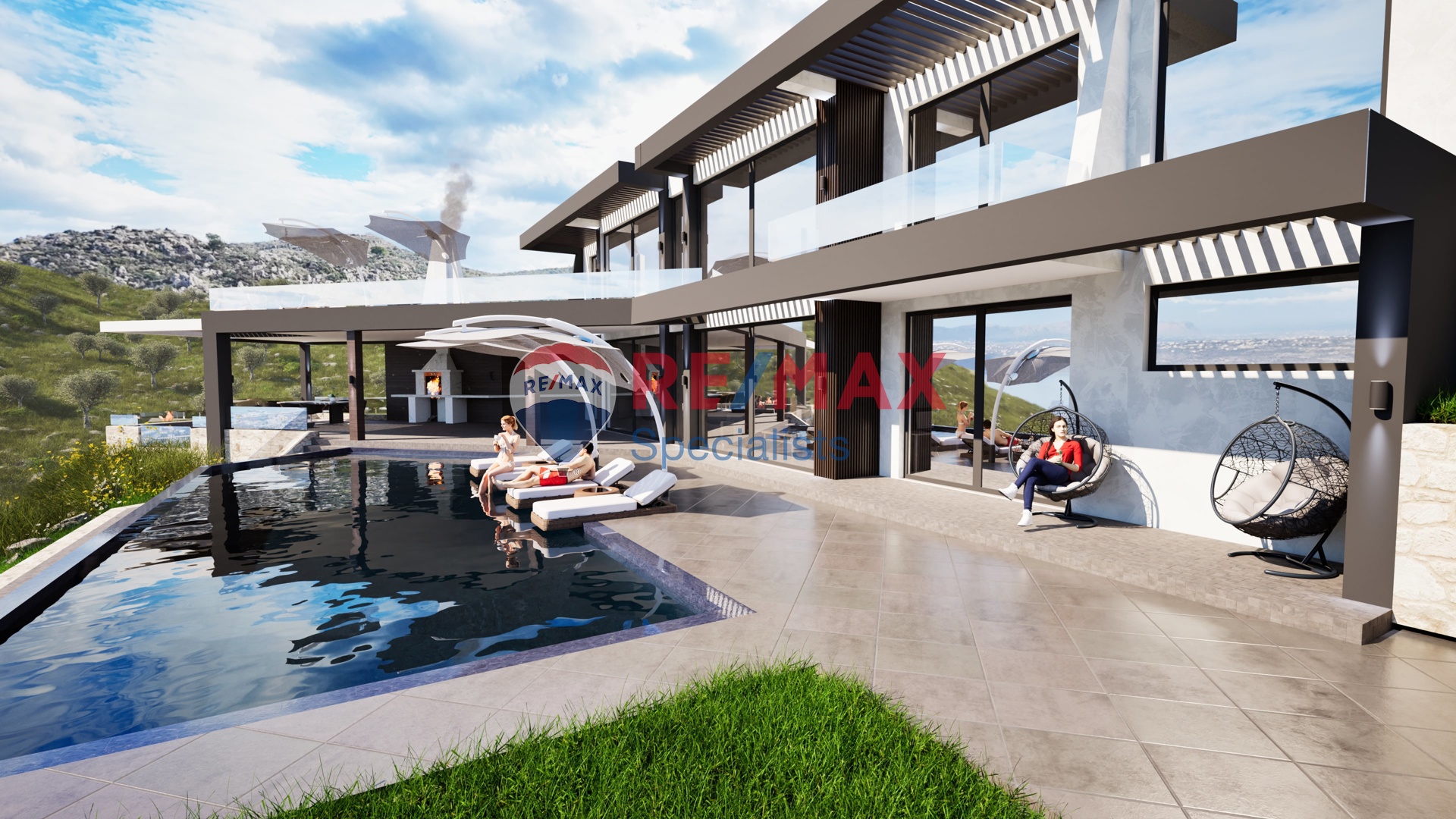 Situated on a peaceful hillside in Malaxa, this under-construction villa offers breathtaking panoramic views of the Cretan Sea, Souda Bay, Chania, and Thodorou Island. Designed with care for aesthetics and functionality, it promises complete privacy, high-end living, and seamless integration with nature.