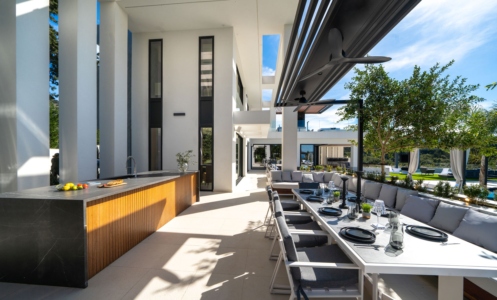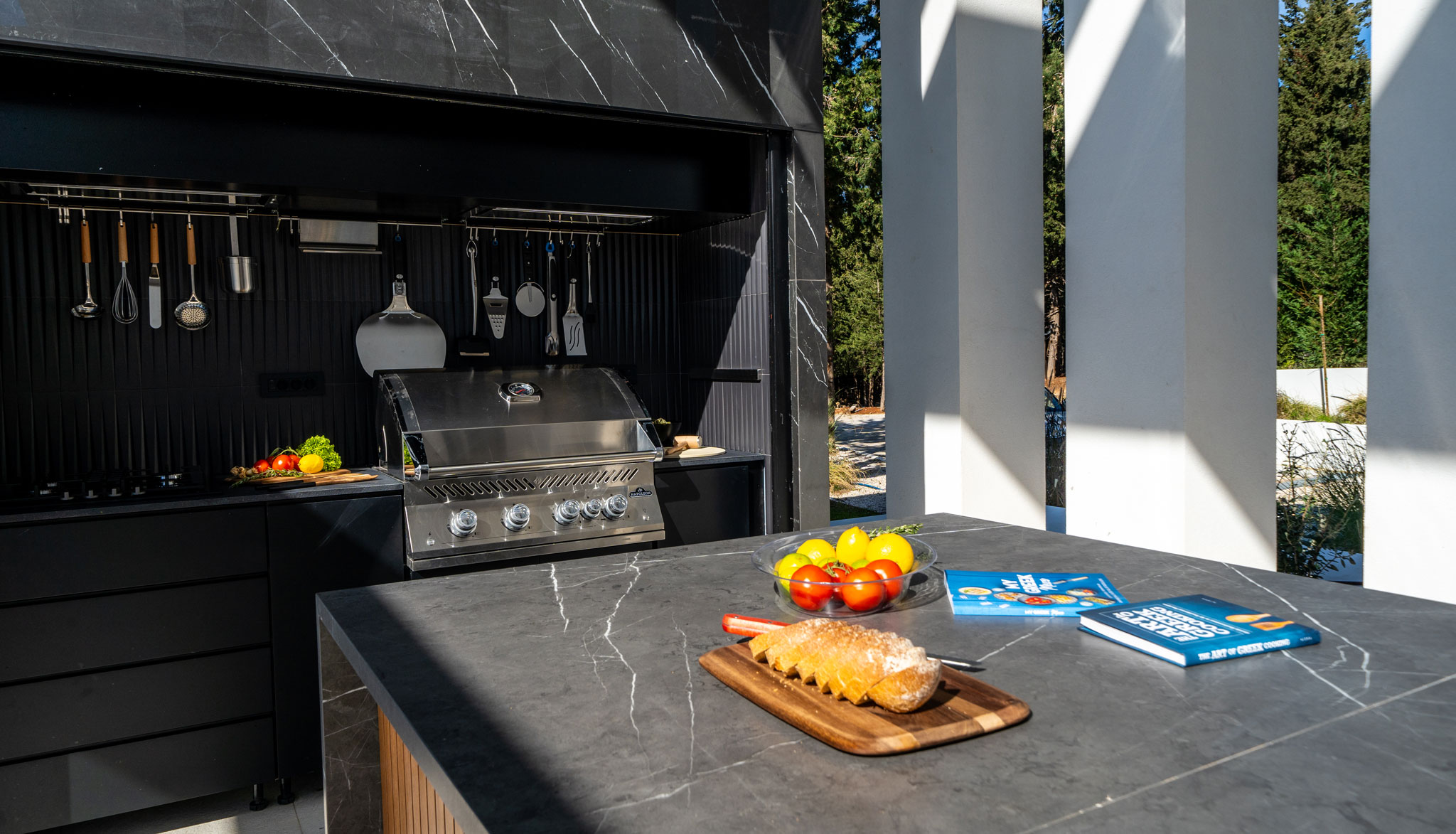 Property Features: Bedrooms: 6 spacious and tastefully designed rooms Bathrooms: 9 luxurious bathrooms, including en-suites Living Area: 500 sq m. of refined interior spaces with high-quality finishes Outdoor Areas: Large terraces and private landscaped gardens Main Pool: Impressive 135 sq m. infinity pool with two built-in jacuzzi zones Children’s Pool: Dedicated 25 sq m pool with unique outdoor cinema installation Rooftop Jacuzzi: 20 sq m jacuzzi pool on the upper level balcony, with unparalleled views Outdoor Kitchen & BBQ: Fully equipped for entertaining under the Cretan sun